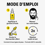 Lave ton visage, utilise le Derma Roller 1 à 2 fois par semaine. Applique 4 à 6 gouttes matin et soir, masse pendant 1 minute. Ne rince pas.